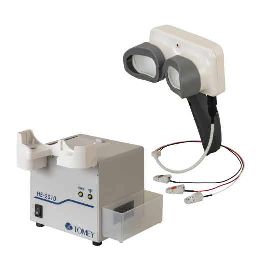 目に光を当てた際に網膜で発生する電位変化(波形)を測定し、視機能に影響する網膜の機能的変化を確認する検査機器です。主に、糖尿病網膜症や網膜色素変性症などに有用な検査です。